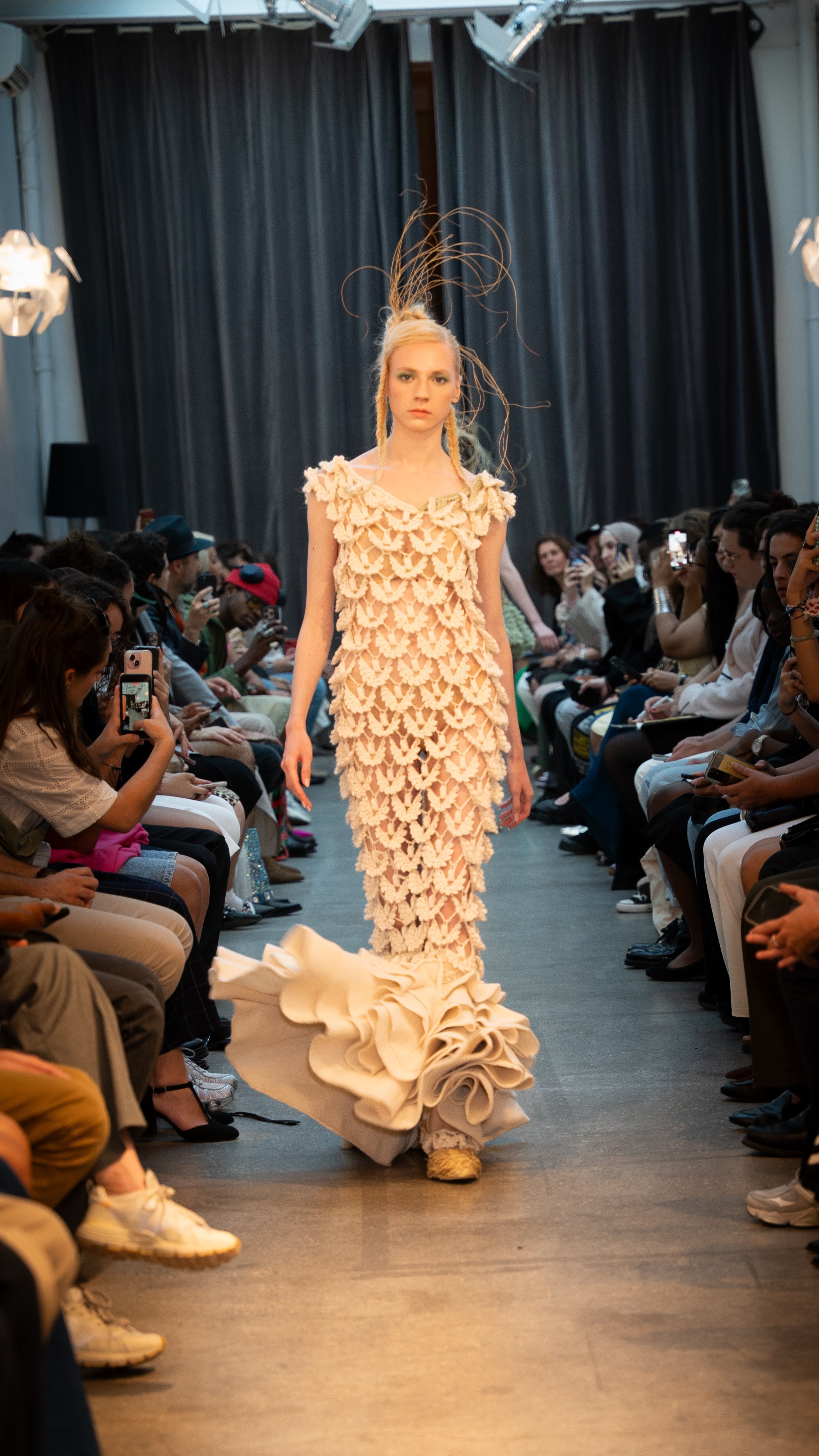 A proud first showcase for Acien on the Paris Fashion Week runway at the E-Fashion Awards. A memorable moment for our Pre-Collection garments to be displayed. Created with regenerative Merino Wool from France, Himalayan nettle in partnership with a social enterprise, and dry esparto branches from the South of Spain.
