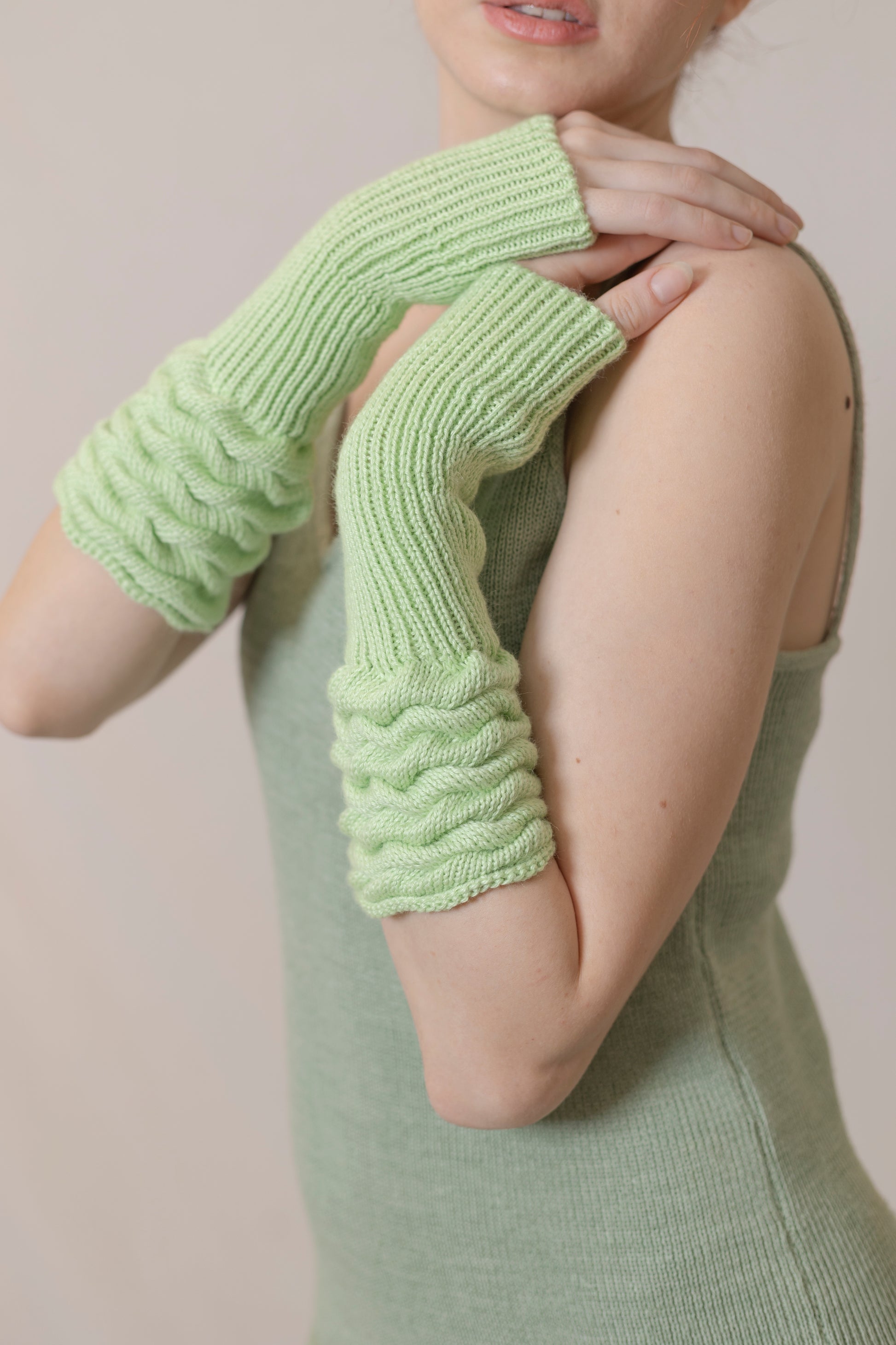 Lovingly made with a focus on nature, this cuffs are hand- knitted from a premium mix of regenerative merino wool from the French Alps and Himalayan nettle provided by a Nepalese social enterprise. Dyed with GOTS-certified colors.